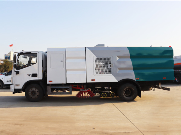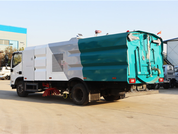 天錦洗掃車利用高壓水流及傾斜掃刷將垃圾掃**吸盤前面,在風機產生的負壓作業(yè)下,風流在閉合的回路中將垃圾吸入垃圾箱儲存,整個作業(yè)過程均是物理原理,不會產生化學廢料或垃圾外泄對環(huán)境的二次污染,同時,后噴霧的降塵有效的降低了空氣中的粉塵濃度,解決粉塵污染問題。洗掃潔凈度高,該車型功能齊全能解決不同路面環(huán)境的作業(yè),一次作業(yè)洗掃效率達98%以上,**沖洗功能、洗掃功能、路沿清洗功能、后噴霧功能、低壓沖洗功能以及采用的中置吸盤+左右噴桿清洗方式,可對頁面、勾縫、彎道處、路沿上等處的灰塵、垃圾均能有效的處理干凈,確保環(huán)境整潔。