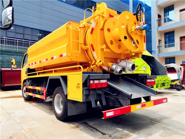 清洗部分:1.8方水箱,采用4mmQ235優(yōu)質(zhì)碳鋼板,水箱兩側(cè)消防接口進(jìn)水,工具箱一個(gè)。采用德國品浮高壓泵170升流量,24兆帕,配60米內(nèi)徑19#高壓管,10個(gè)大小不同噴頭一套, 后置式清洗卷盤,帶淋管裝置(用于淋洗高壓管疏通管道過后上面殘留的污物),帶氣吹水功能(用于吹出每次高壓管工作完以后內(nèi)部殘留的水漬,防止天冷結(jié)冰影響下次使用)