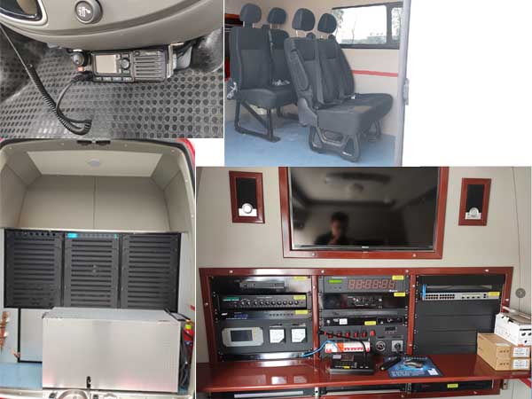 裝頂平臺、防水音柱、頂置空調(diào)。該車主要用于應(yīng)急指揮,現(xiàn)場音視頻信息采集和傳輸。2.選裝側(cè)踏步、