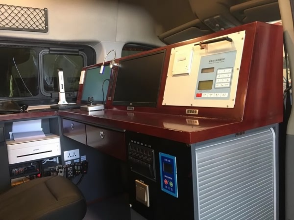工作區(qū)前與駕駛區(qū)隔斷。安裝會議臺與兩側(cè)沙發(fā)。并在前隔斷板后加裝機(jī)架,機(jī)架依據(jù)實(shí)際設(shè)備參數(shù)訂制,以安全耐用,方便查看為